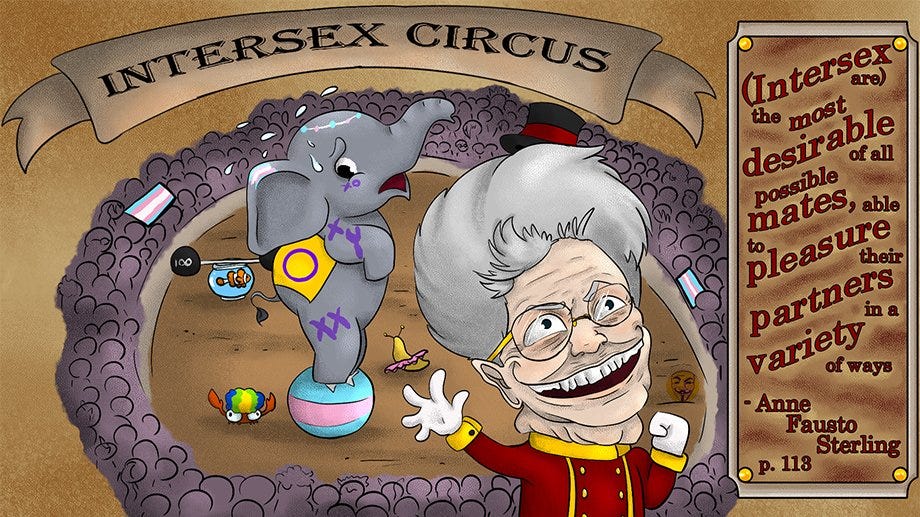 An awfully objective quotation from Anne Fausto-Sterling's book *Sexing the Body* (2000) is featured in this caricature of the author.